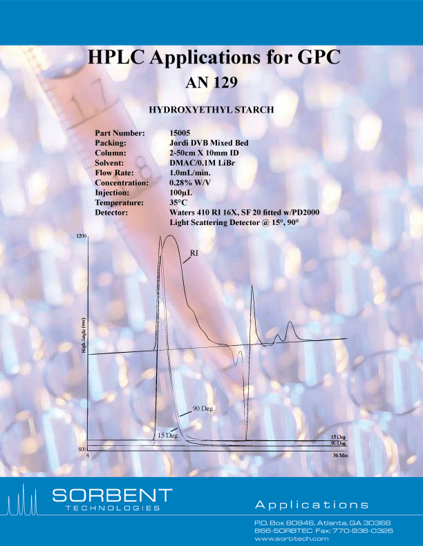 Detection: Waters 410 RI 16X, SF 20 fitted w/PD2000 Light Scattering Detector @ 15°, 90°