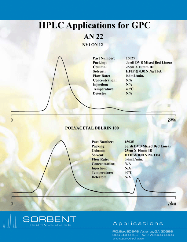 Solvent: HFIP & 0.01N Na TFA Flow Rate: 0.6mL/min. Concentration: N/A Injection: N/A Temperature: 40°C