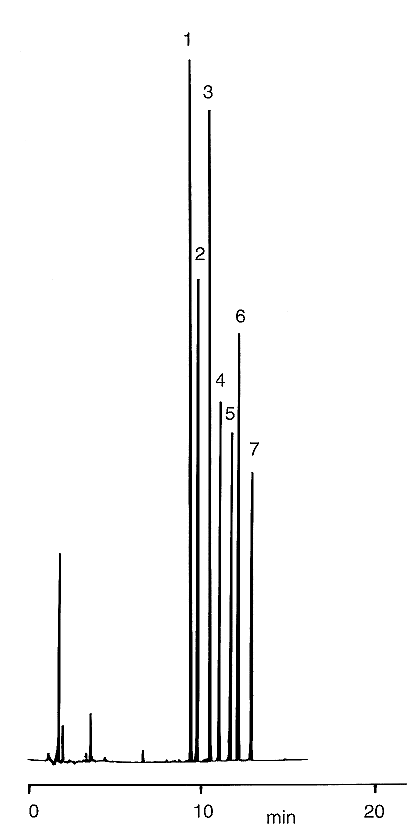 Injection volume: 0.5 ul on column Carrier gas: 150 kPa H2 Temperature: 80 °C (0 min iso); 30 °C/min to 220 °C, 4 C/min to 280 °C Concentration : 100 pg / peak