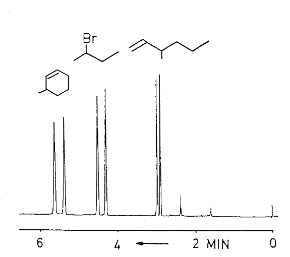 201880 Separation of enantiomers of 3-methyl-1-hexene 2-bromobutane and 3-methylcyclohexene.