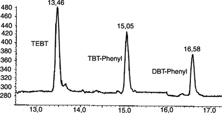 Legend: 13,46 min Tetrabutyl-tin (internal standard)