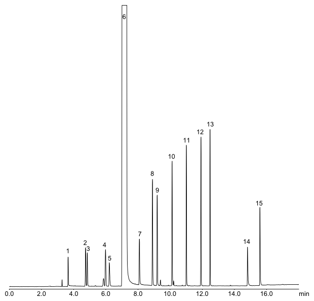 Temperature program: 50 °C [6 min] -> [15 °C/min] -> 200 °C [5 min]
