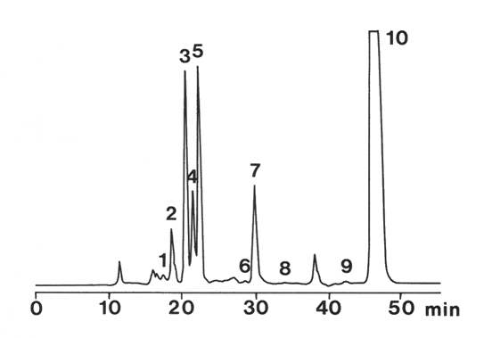 Detection: HPLC, UV 365 nm, NUCLEOSIL® 120-5 C18