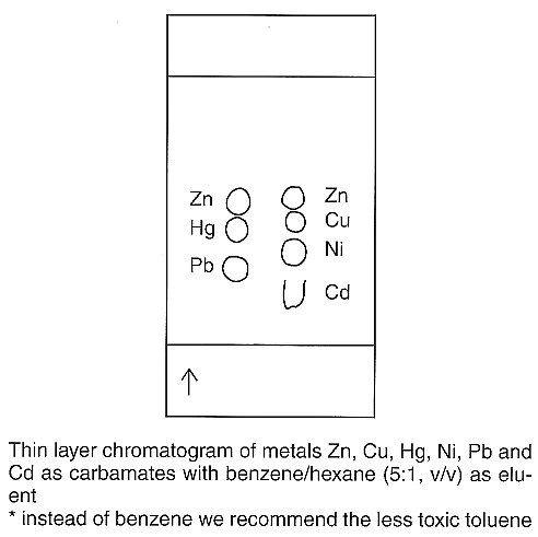 Retention indices of metal carbamates (relative to zinc carbamate = 1.00)