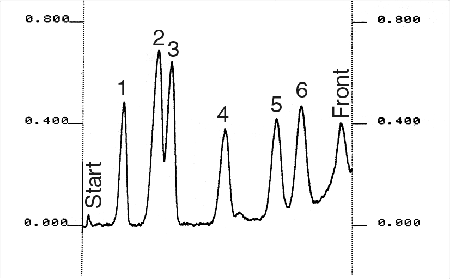 Detection: Shimadzu TLC scanner CS 930, UV, 238 nm